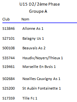 Voici le tirage du groupe des U15 D2 :