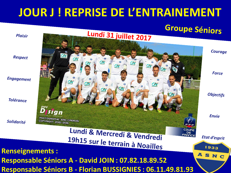 Le groupe Séniors va se retrouver ce lundi soir 31 Juillet pour débuter la préparation d'avant saison.