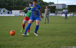 Après un premier quart-heure compliqué et l'entrée en jeu de Maël Simmonet Toppinard au milieu de terrain qui sera charger de rester constamment sur le n°7 des verts afin de "couper" le réseau de passe de l'adversaire. Maël se montrera très rigoureux sur les consignes et ne lâchera à aucun moment son adversaire, cela lui permettra aussi de repartir de l'avant de progresser en utilisant la largeur, Lucas Vicente se montrera dangereux dans ses déplacements dans l'intervale mais le défenseur central reviendra à plusieurs reprises pour stoper l'occassion d'ouvrir le score.