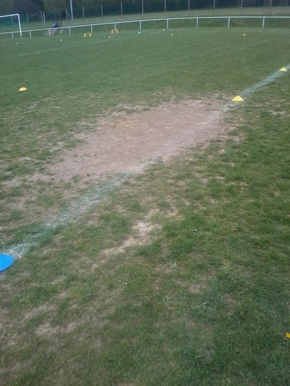 J'ai tracé le terrain comme j'ai pu par manque de platre mais toutes les lignes de surface et le tour du terrain étaient tracées. Seuls la ligne médiane et le rond central n'étaient pas correctement tracés. Il restait les traces de la semaine précedente néanmoins.